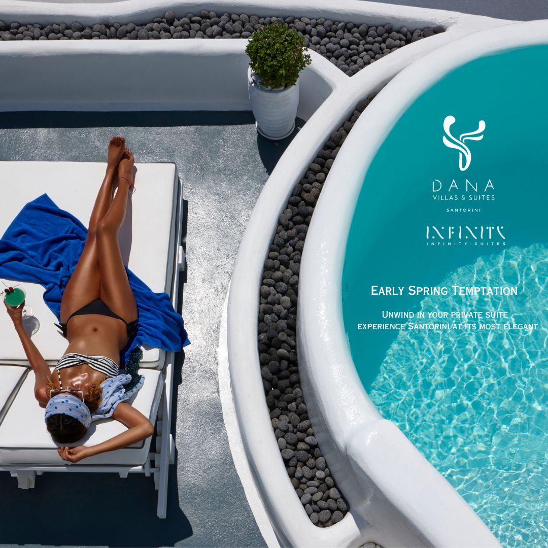 Dana stands for an eternal love affair with divine authenticity and a naturalist adventure on Santorini island. It is a place to live your dreams, hit by a deep sense of satisfaction, where nothing else seems to matter. Cave pool suites offer seclusion, contemporary island accommodation with breathtaking views of the deep blue sea, overlooking the volcano.