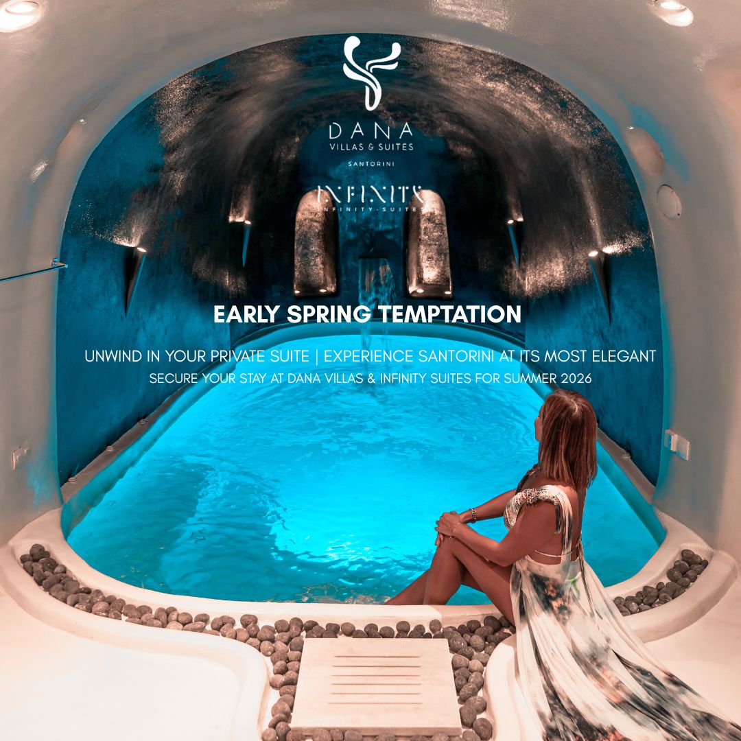 Dana stands for an eternal love affair with divine authenticity and a naturalist adventure on Santorini island. It is a place to live your dreams, hit by a deep sense of satisfaction, where nothing else seems to matter. Cave pool suites offer seclusion, contemporary island accommodation with breathtaking views of the deep blue sea, overlooking the volcano.